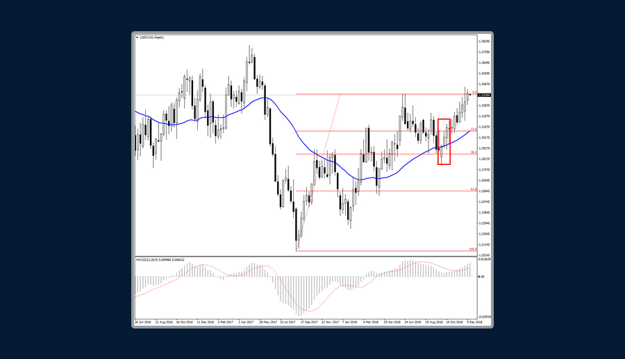 将斐波那契水平与K线图、震荡指标和其他指标结合起来可获取更强的信号。您在以下图表中可以看到,“三白兵”形态得到价格高于移动均线、MACD(平滑异同移动平均线)高于零轴确认。